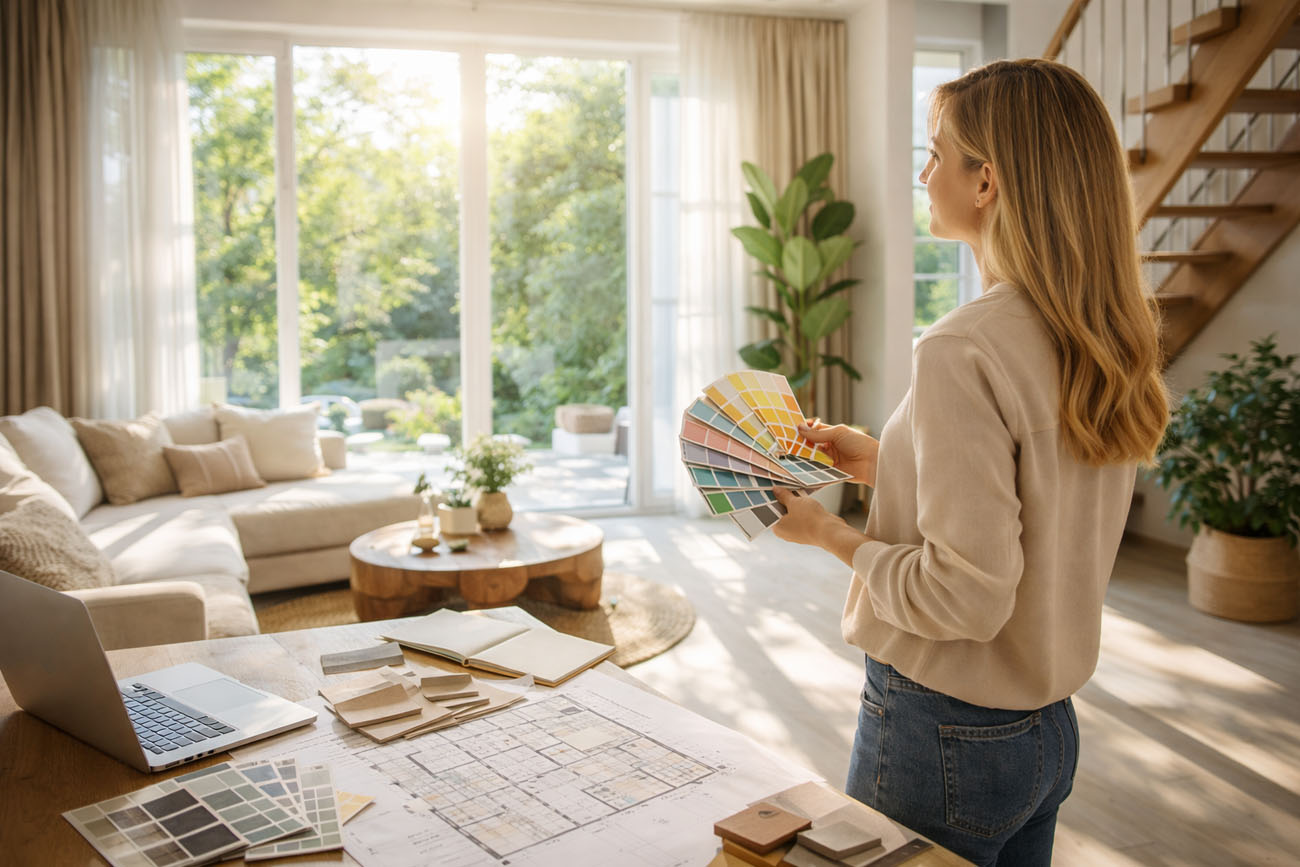 Światło dzienne kształtuje nastrój i kolory, podkreśla faktury i porządkuje strefy funkcjonalne. Może to sprzyjać rzadszemu włączaniu lamp, co może przyczynić się do efektywności energetycznej i korzyści dla domowego budżetu. W nowych domach w stanie deweloperskim można świadomie ustawić układ pomieszczeń i przeszkleń względem stron świata.